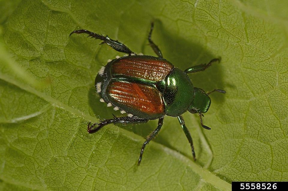 - Foto: Japankäfer Popillia japonica: 2023 zum ersten Mal in Kloten nachgewiesen, worauf Teile von Dübendorf und Wangen-Brüttisellen unter Quarantäne gestellt wurden. (Joseph Berger, CC BY 3.0 US)